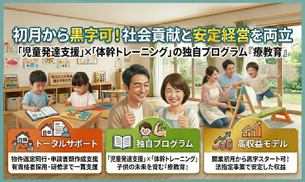 待機児童140万人市場。療育の質で選ばれる、社会貢献型FCオーナー募集:企業情報