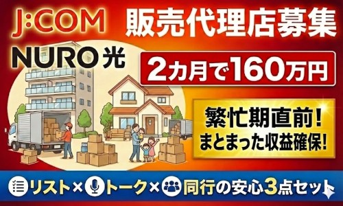 NURO光・J:COM代理店募集。繁忙期直前!まとまった収益を確保。:企業情報