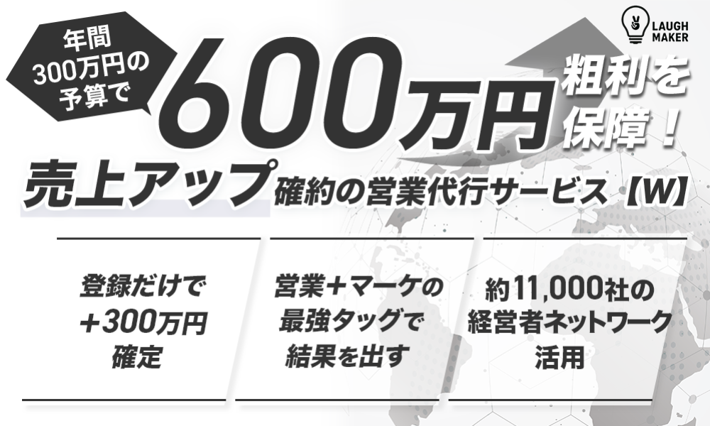 利用しない手はない粗利600万円保障の営業代行サービスを貴社商材にしませんか?:企業情報