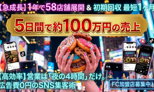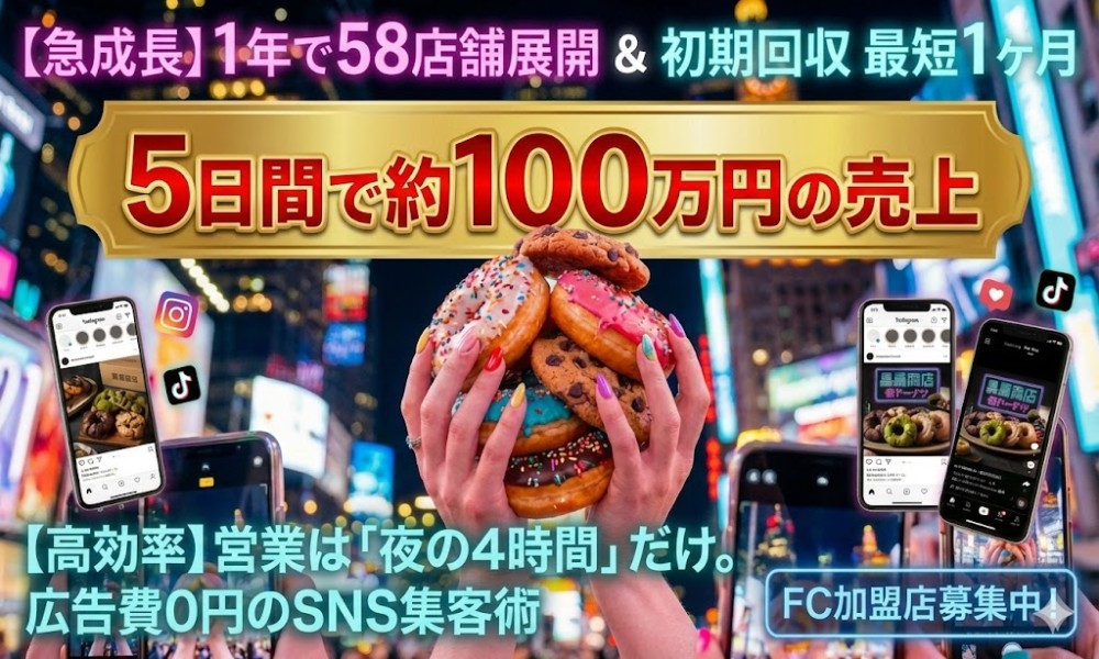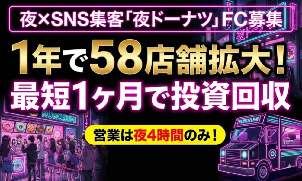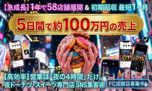 【1年で58店舗】夜×SNS集客「夜ドーナツ」FC募集!最短1ヶ月回収:企業情報