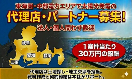 中部限定!太陽光用地の探索・交渉。土地を見つけ繋ぐだけの高収益案件:企業情報